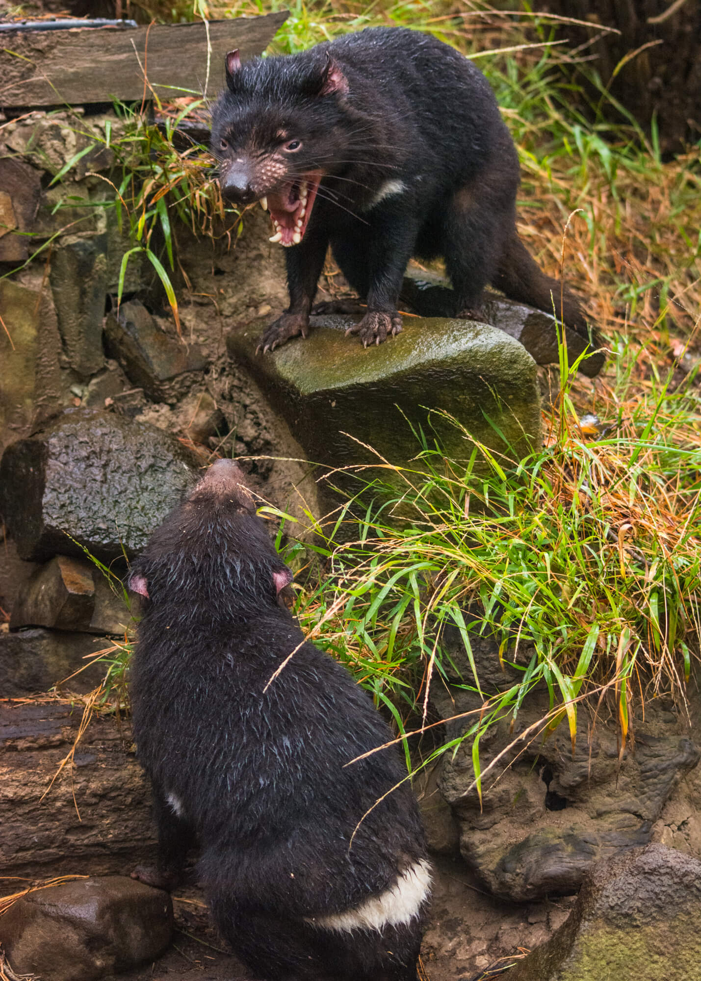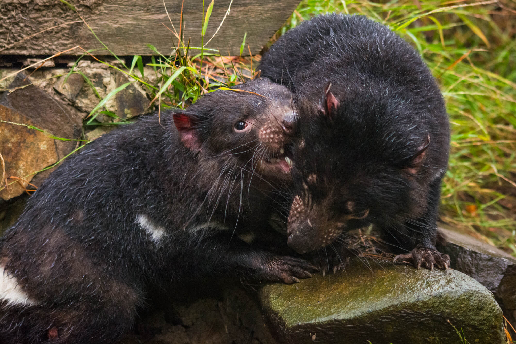 These two are sisters, if you can’t tell by the fighting. Their growls and calls sound especially vicious, hence the name, but they’re currently an endangered species that needs our protection, due to facial tumor disease and population decline. Zoos and places like this provide a key breeding area to keep population numbers viable. The disease actually hasn’t spread to the Tasman Peninsula where Port Arthur is located (thanks to a very narrow neck that cuts it off, complete with prevention to stop devils crossing either way), so this area is probably the best place to be a Tazzy devil at the moment.