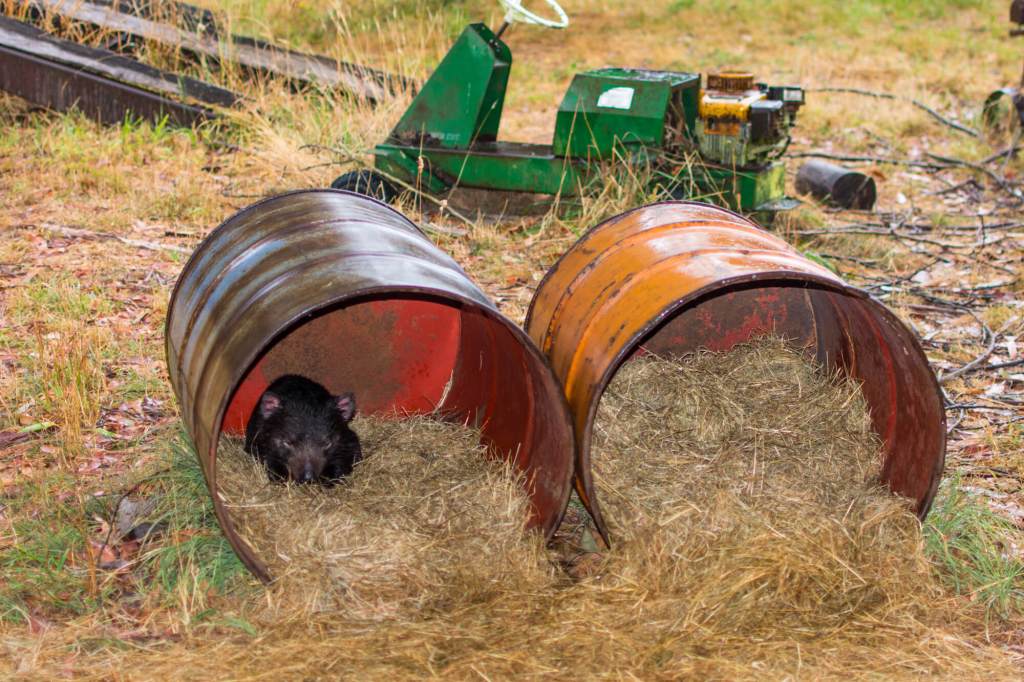 On our way out, as the weather turned against us, we saw a couple more devils in another habitat. Who wouldn’t want to escape the rain and have a nice snooze in a barrel?