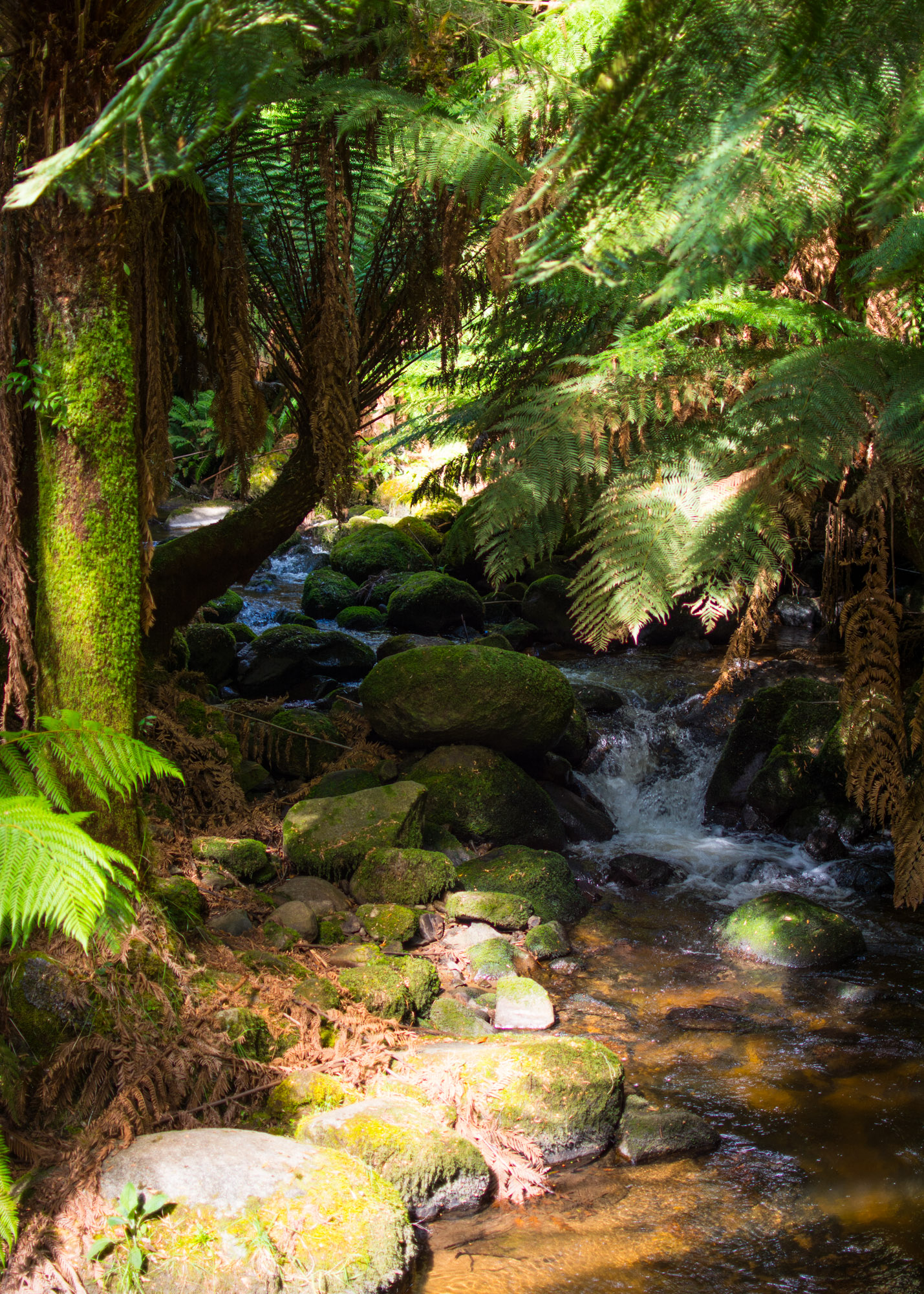 We drove northward up the coast before heading inland onto winding roads. Our first detour to explore was Pyengana (don’t ask me to remember the pronunciation), home to a waterfall and dairy farm. Down another long and serpentine road, we parked at Saint Columba Falls State Reserve. The rainforest here was reminiscent of New Zealand, though the fauna wasn’t - we were lucky enough to watch an echidna nosing around in the underbrush thanks to some keen-eyed walkers ahead of us.