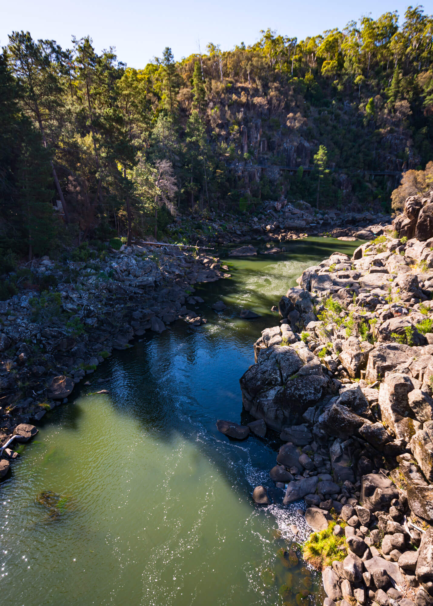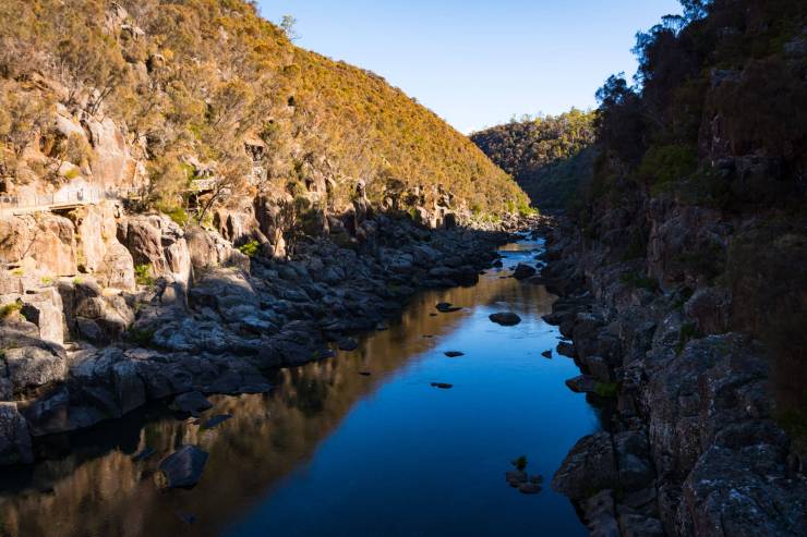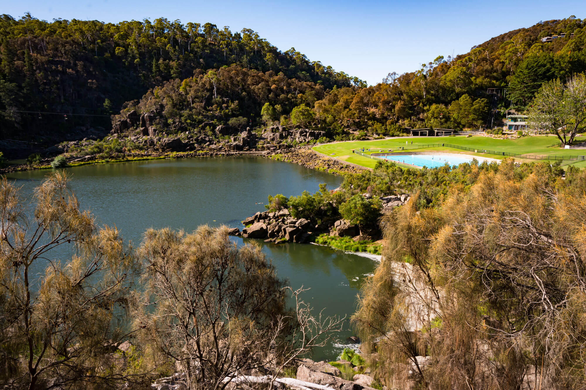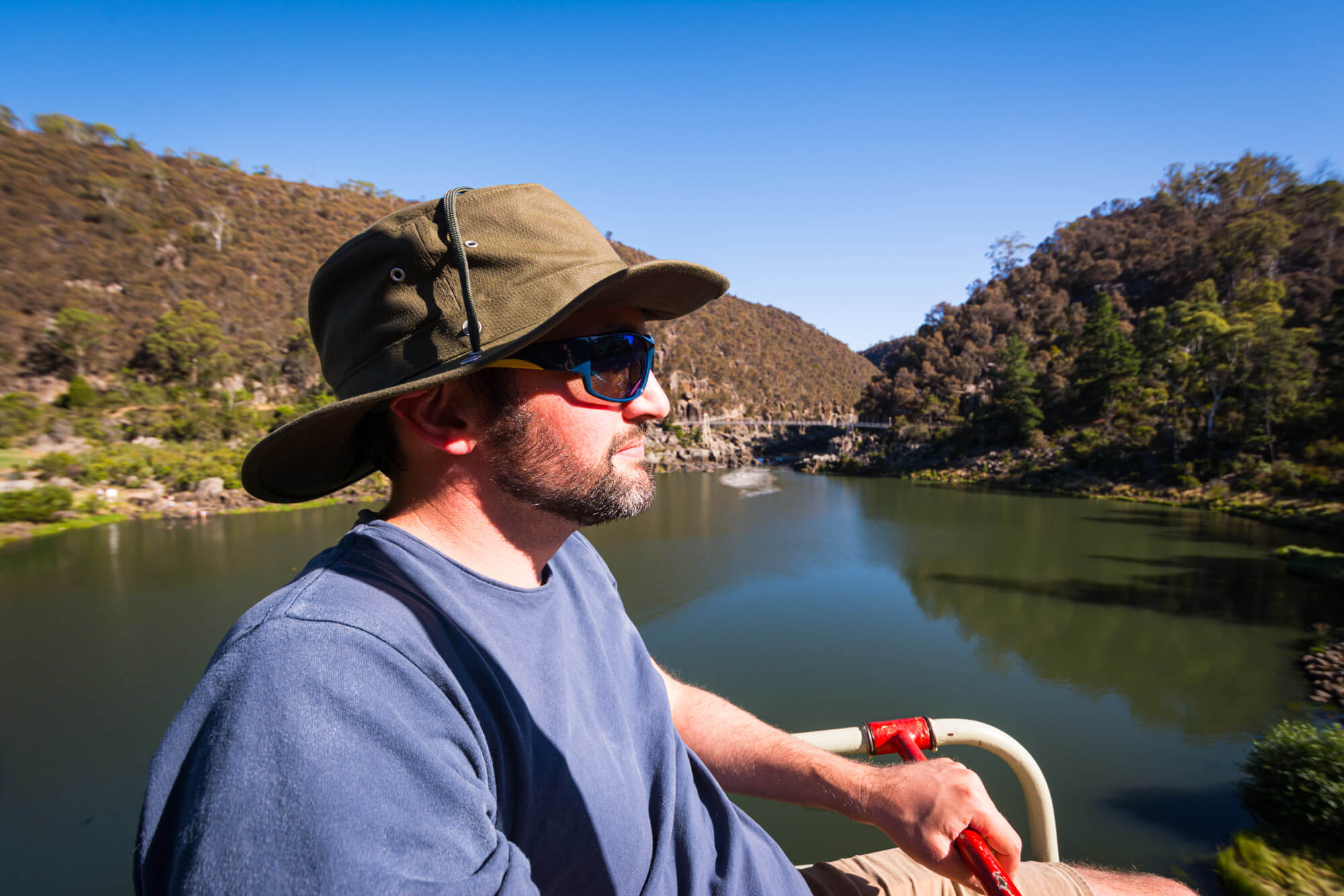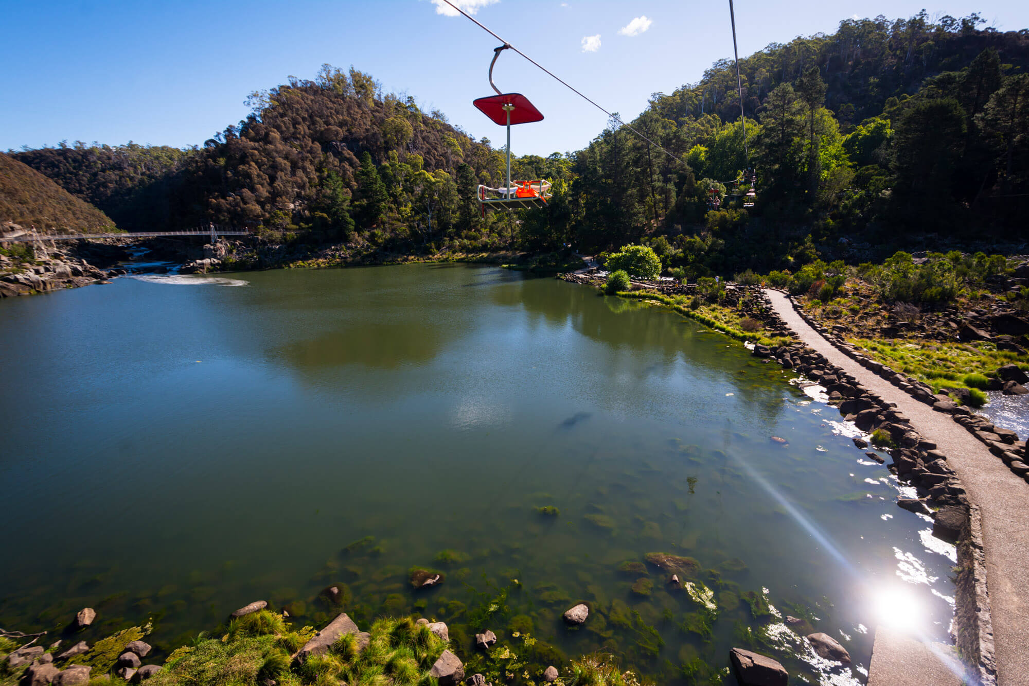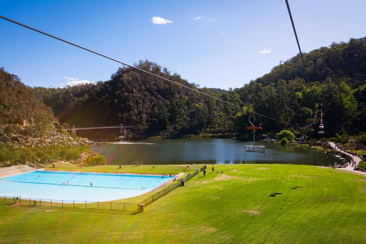 When we hit the city of Launceston, we made our way to Cataract Gorge, known for its scenic chairlift. It was a hot, sunny day, so lots of visitors were there, either using the chairlift, hiking or swimming in the very tempting pool. We got tickets for a one-way trip on the lift so we could walk back, which ended up being perfect.